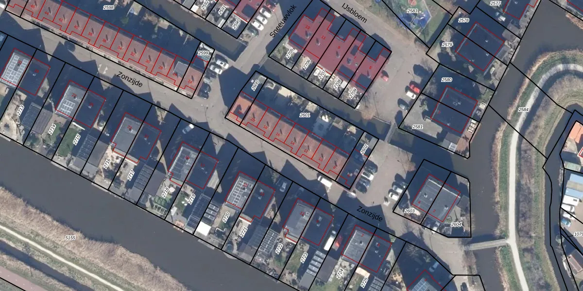 Zonzijde 14 is gelegen op kadastraal perceel ASD01N2601. Deze kadastrale aanduiding is uniek en wordt gebruikt door het Kadaster om eigendomsrechten en andere zakelijke rechten vast te leggen. Het perceel maakt onderdeel uit van de kadastrale gemeente Assendelft.