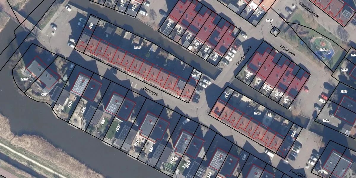 Zonzijde 26 is gelegen op kadastraal perceel ASD01N2598. Deze kadastrale aanduiding is uniek en wordt gebruikt door het Kadaster om eigendomsrechten en andere zakelijke rechten vast te leggen. Het perceel maakt onderdeel uit van de kadastrale gemeente Assendelft.