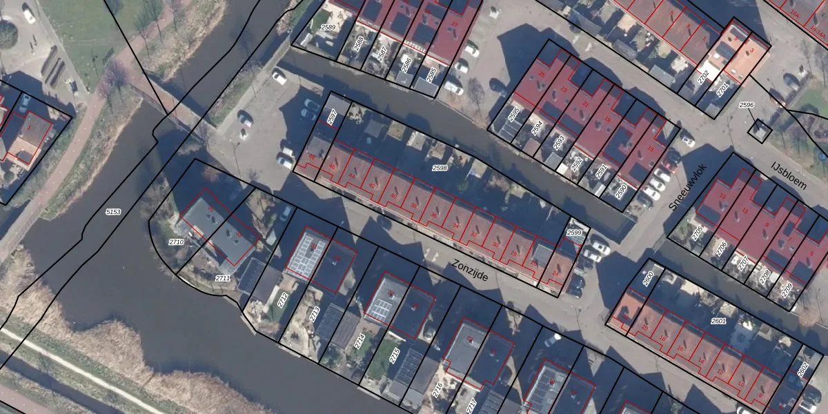 Zonzijde 38 is gelegen op kadastraal perceel ASD01N2598. Deze kadastrale aanduiding is uniek en wordt gebruikt door het Kadaster om eigendomsrechten en andere zakelijke rechten vast te leggen. Het perceel maakt onderdeel uit van de kadastrale gemeente Assendelft.