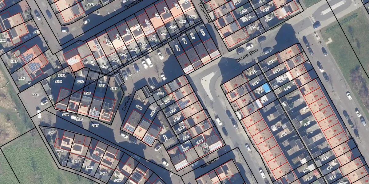 Het perceel waarop Zwarte Ring 101 staat heeft een oppervlakte van 111 m². Dit is een middelgroot perceel. De perceeloppervlakte wordt geregistreerd door het Kadaster. Gedetailleerde informatie over de maten van dit perceel kunt u vinden in het rapport Kadastrale kaart met maatvoering van Zwarte Ring 101.
