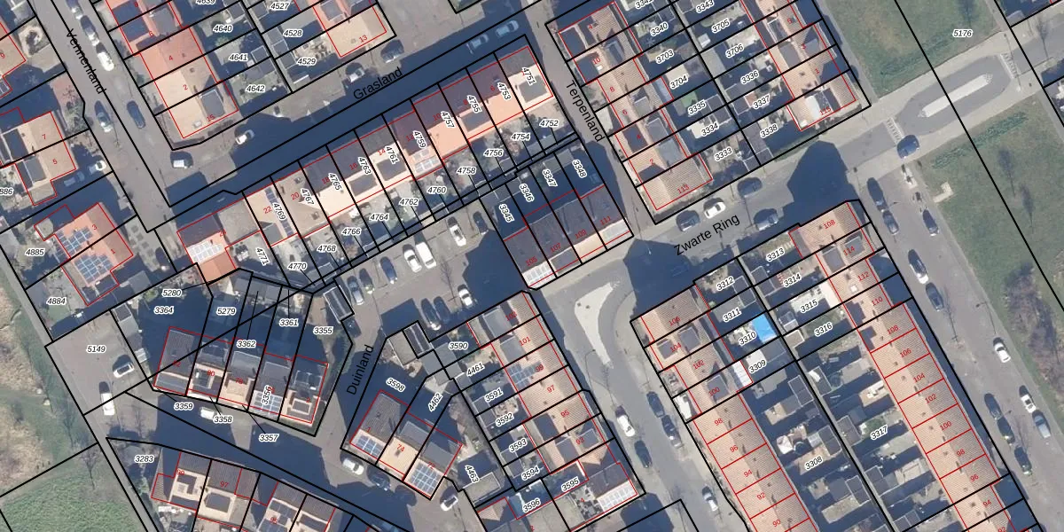 Het perceel waarop Zwarte Ring 105 staat heeft een oppervlakte van 114 m². Dit is een middelgroot perceel. De perceeloppervlakte wordt geregistreerd door het Kadaster. Gedetailleerde informatie over de maten van dit perceel kunt u vinden in het rapport Kadastrale kaart met maatvoering van Zwarte Ring 105.