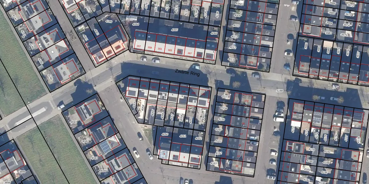 Het perceel waarop Zwarte Ring 166 staat heeft een oppervlakte van 131 m². Dit is een middelgroot perceel. De perceeloppervlakte wordt geregistreerd door het Kadaster. Gedetailleerde informatie over de maten van dit perceel kunt u vinden in het rapport Kadastrale kaart met maatvoering van Zwarte Ring 166.