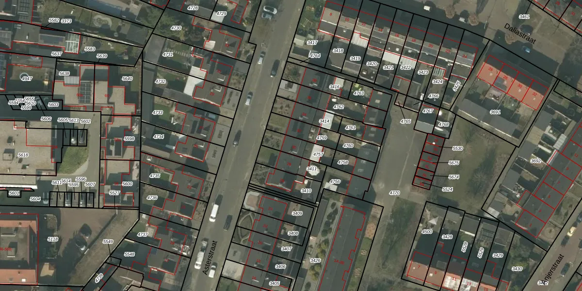 Het perceel waarop Asterstraat 30 staat heeft een oppervlakte van 151 m². Dit is een middelgroot perceel. De perceeloppervlakte wordt geregistreerd door het Kadaster. Gedetailleerde informatie over de maten van dit perceel kunt u vinden in het rapport Kadastrale kaart met maatvoering van Asterstraat 30.