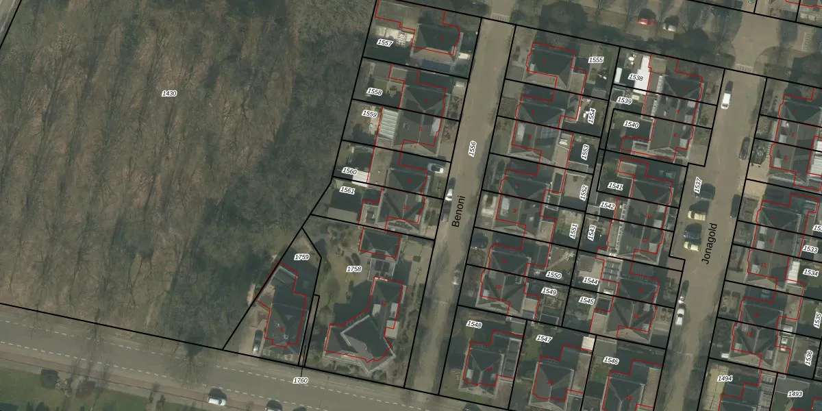 Gebruik de zoekbalk of klik op een perceel voor informatie over de adressen binnen dit perceel.