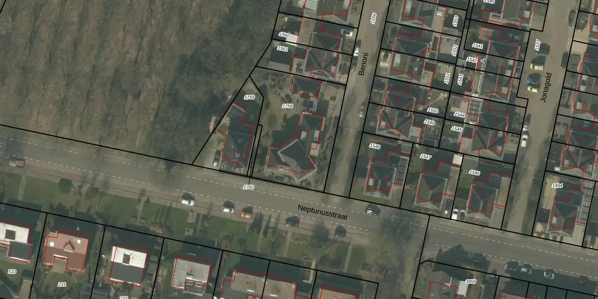 Het perceel waarop Benoni 12 staat heeft een oppervlakte van 975 m². Dit is een groot perceel. De perceeloppervlakte wordt geregistreerd door het Kadaster. Gedetailleerde informatie over de maten van dit perceel kunt u vinden in het rapport Kadastrale kaart met maatvoering van Benoni 12.