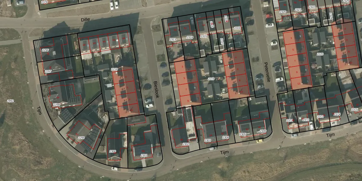 Het perceel waarop Bieslook 7 staat heeft een oppervlakte van 1152 m². Dit is een zeer groot perceel. De perceeloppervlakte wordt geregistreerd door het Kadaster. Gedetailleerde informatie over de maten van dit perceel kunt u vinden in het rapport Kadastrale kaart met maatvoering van Bieslook 7.