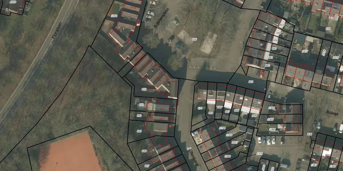 Het perceel waarop Boletenplein 11 staat heeft een oppervlakte van 530 m². Dit is een groot perceel. De perceeloppervlakte wordt geregistreerd door het Kadaster. Gedetailleerde informatie over de maten van dit perceel kunt u vinden in het rapport Kadastrale kaart met maatvoering van Boletenplein 11.