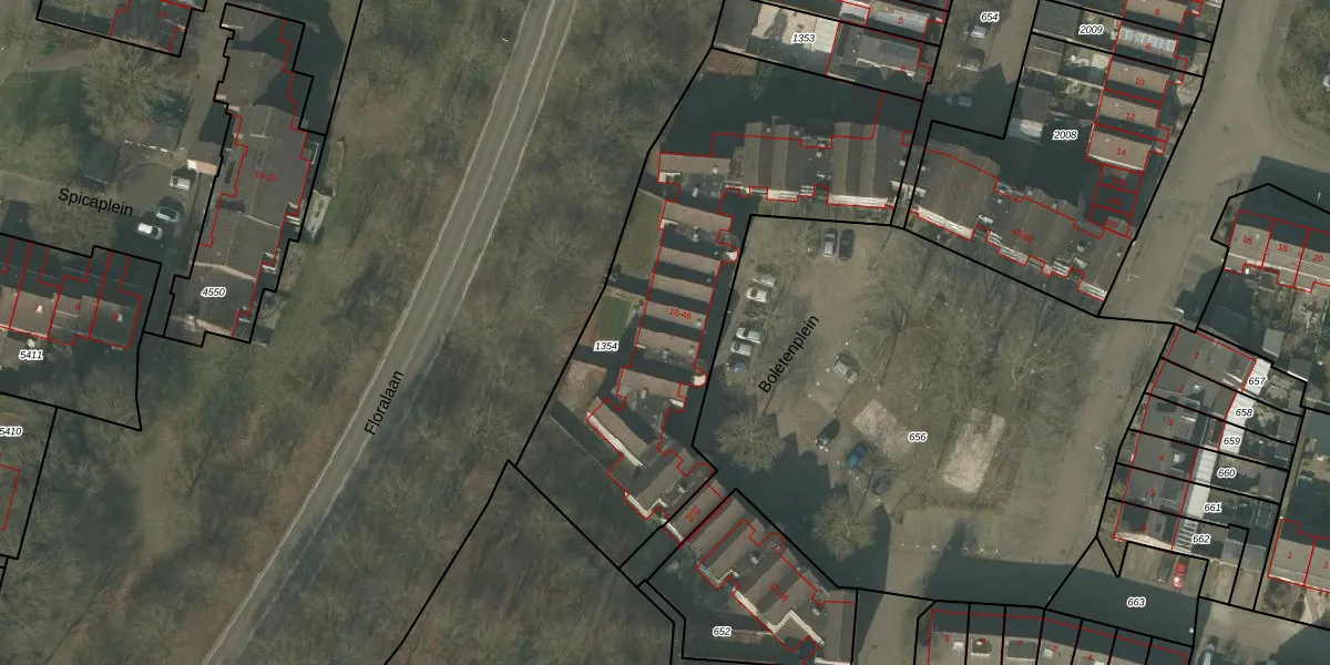 Het perceel waarop Boletenplein 29 staat heeft een oppervlakte van 1886 m². Dit is een zeer groot perceel. De perceeloppervlakte wordt geregistreerd door het Kadaster. Gedetailleerde informatie over de maten van dit perceel kunt u vinden in het rapport Kadastrale kaart met maatvoering van Boletenplein 29.