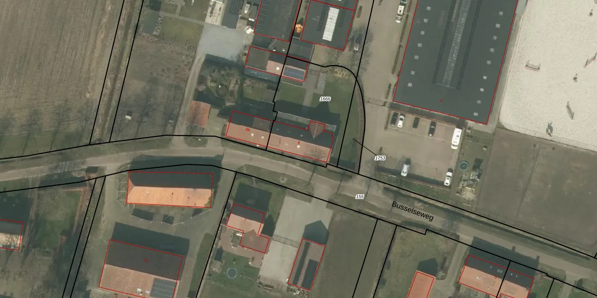 Busselseweg 6 is gelegen op kadastraal perceel ATN01M1666. Deze kadastrale aanduiding is uniek en wordt gebruikt door het Kadaster om eigendomsrechten en andere zakelijke rechten vast te leggen. Het perceel maakt onderdeel uit van de kadastrale gemeente Asten.