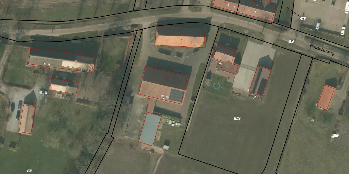 Het perceel waarop Busselseweg 7-a staat heeft een oppervlakte van 1,1 ha. Dit is een zeer groot perceel. De perceeloppervlakte wordt geregistreerd door het Kadaster. Gedetailleerde informatie over de maten van dit perceel kunt u vinden in het rapport Kadastrale kaart met maatvoering van Busselseweg 7-a.