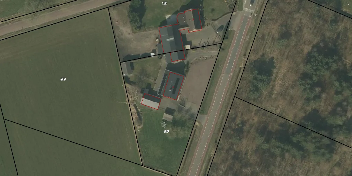 Het perceel waarop het adres ligt is ATN01-N-694. De afkorting 'ATN01' staat voor kadastrale gemeente Asten. De gemiddelde perceelgrootte in Asten is 6633,12 m². Dit perceel is kleiner: de perceeloppervlakte bedraagt 2550 m². Het kleinste perceel in de kadastrale gemeente is 0 m² groot. De grootste perceeloppervlakte is 3,95 km². Dit is het enige adres dat aanwezig is op het perceel. De laatste wijziging in het de Basisregistratie Kadaster (BRK) was op 06-03-2008.