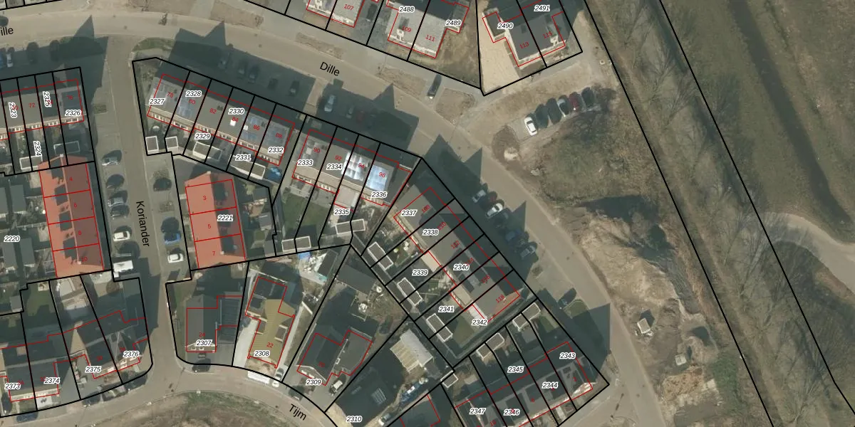 Het perceel waarop Dille 108 staat heeft een oppervlakte van 203 m². Dit is een middelgroot perceel. De perceeloppervlakte wordt geregistreerd door het Kadaster. Gedetailleerde informatie over de maten van dit perceel kunt u vinden in het rapport Kadastrale kaart met maatvoering van Dille 108.
