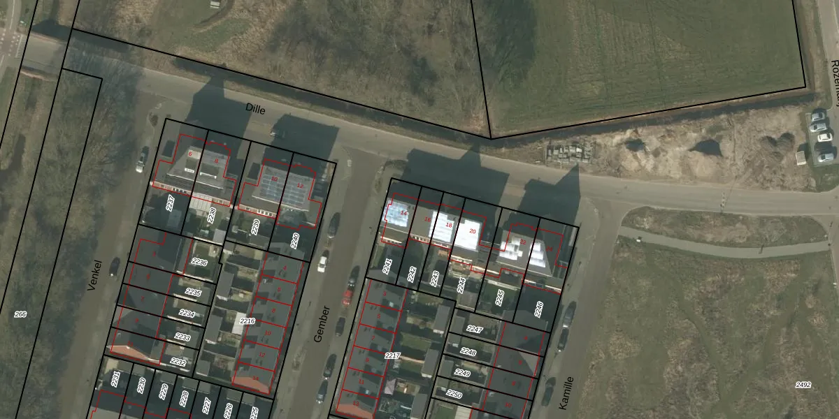 Gebruik de zoekbalk of klik op een perceel voor informatie over de adressen binnen dit perceel.
