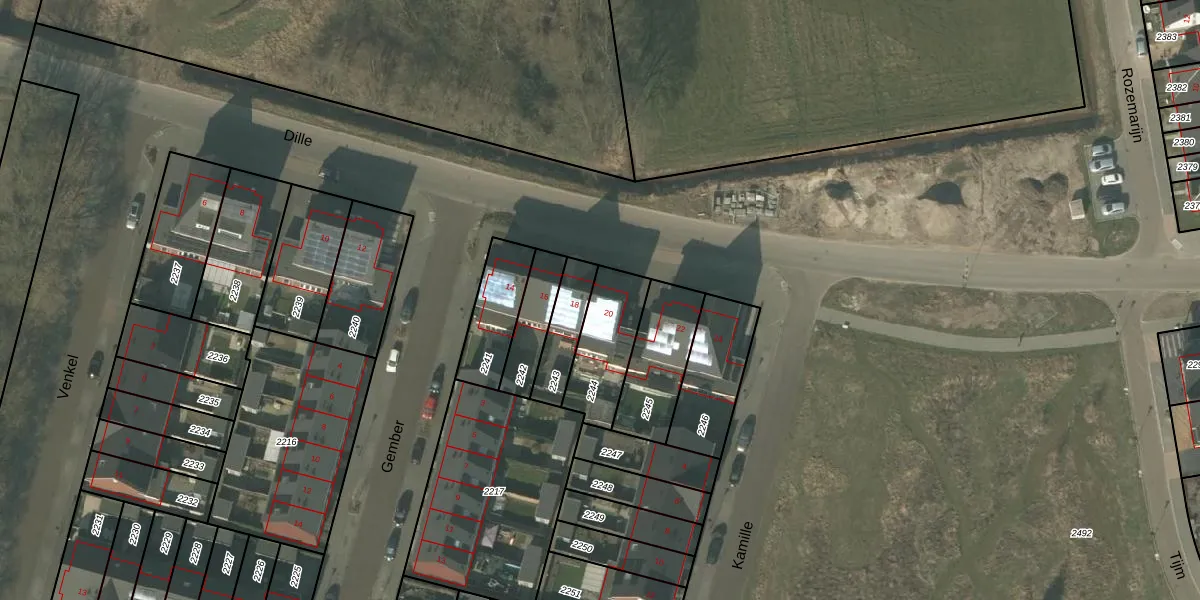 Het perceel waarop Dille 20 staat heeft een oppervlakte van 230 m². Dit is een middelgroot perceel. De perceeloppervlakte wordt geregistreerd door het Kadaster. Gedetailleerde informatie over de maten van dit perceel kunt u vinden in het rapport Kadastrale kaart met maatvoering van Dille 20.