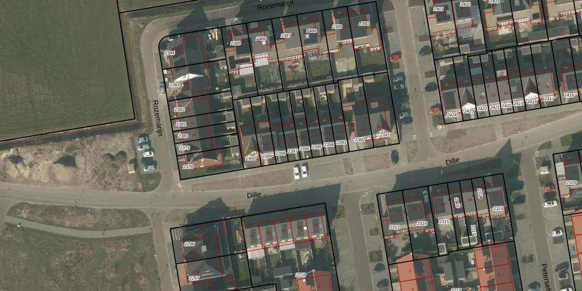 Het perceel waarop Dille 47 staat heeft een oppervlakte van 101 m². Dit is een middelgroot perceel. De perceeloppervlakte wordt geregistreerd door het Kadaster. Gedetailleerde informatie over de maten van dit perceel kunt u vinden in het rapport Kadastrale kaart met maatvoering van Dille 47.