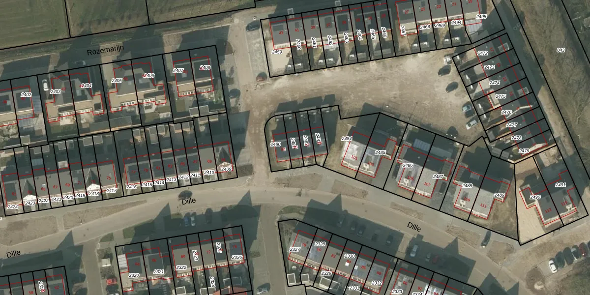 Het perceel waarop Dille 95 staat heeft een oppervlakte van 78 m². Dit is een klein perceel. De perceeloppervlakte wordt geregistreerd door het Kadaster. Gedetailleerde informatie over de maten van dit perceel kunt u vinden in het rapport Kadastrale kaart met maatvoering van Dille 95.
