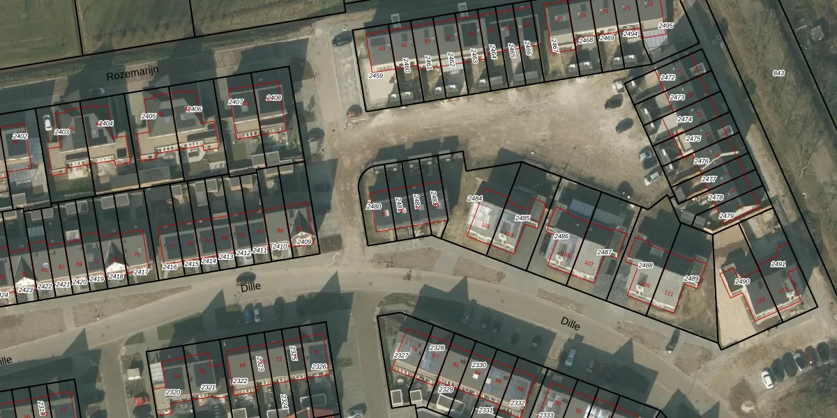 Het perceel waarop Dille 97 staat heeft een oppervlakte van 78 m². Dit is een klein perceel. De perceeloppervlakte wordt geregistreerd door het Kadaster. Gedetailleerde informatie over de maten van dit perceel kunt u vinden in het rapport Kadastrale kaart met maatvoering van Dille 97.
