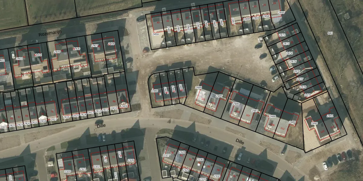 Het perceel waarop Dille 99 staat heeft een oppervlakte van 82 m². Dit is een klein perceel. De perceeloppervlakte wordt geregistreerd door het Kadaster. Gedetailleerde informatie over de maten van dit perceel kunt u vinden in het rapport Kadastrale kaart met maatvoering van Dille 99.