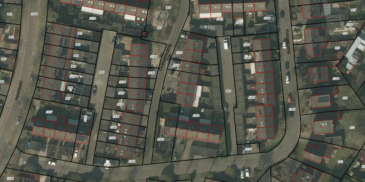 Het perceel waarop Duijssencamp 27 staat heeft een oppervlakte van 1352 m². Dit is een zeer groot perceel. De perceeloppervlakte wordt geregistreerd door het Kadaster. Gedetailleerde informatie over de maten van dit perceel kunt u vinden in het rapport Kadastrale kaart met maatvoering van Duijssencamp 27.