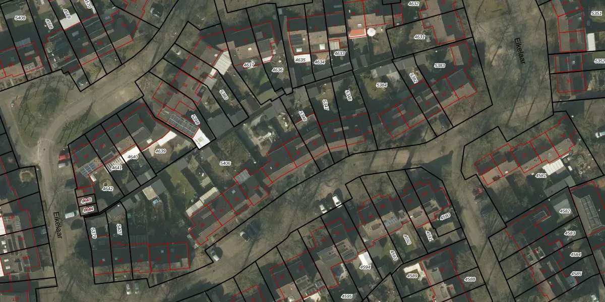 Het perceel waarop Eikelaar 32 staat heeft een oppervlakte van 2478 m². Dit is een zeer groot perceel. De perceeloppervlakte wordt geregistreerd door het Kadaster. Gedetailleerde informatie over de maten van dit perceel kunt u vinden in het rapport Kadastrale kaart met maatvoering van Eikelaar 32.