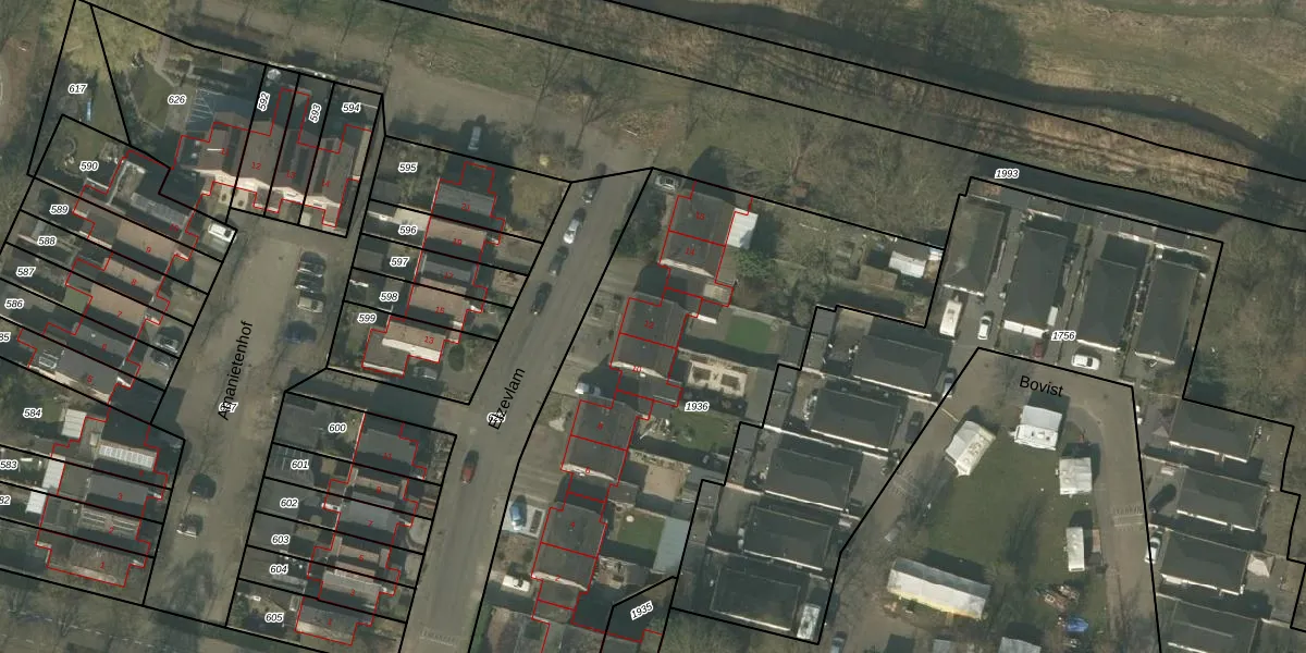 Het perceel waarop Elzevlam 12 staat heeft een oppervlakte van 2485 m². Dit is een zeer groot perceel. De perceeloppervlakte wordt geregistreerd door het Kadaster. Gedetailleerde informatie over de maten van dit perceel kunt u vinden in het rapport Kadastrale kaart met maatvoering van Elzevlam 12.