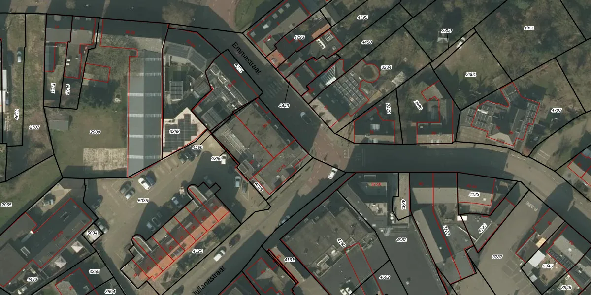Het perceel waarop Emmastraat 34 staat heeft een oppervlakte van 567 m². Dit is een groot perceel. De perceeloppervlakte wordt geregistreerd door het Kadaster. Gedetailleerde informatie over de maten van dit perceel kunt u vinden in het rapport Kadastrale kaart met maatvoering van Emmastraat 34.