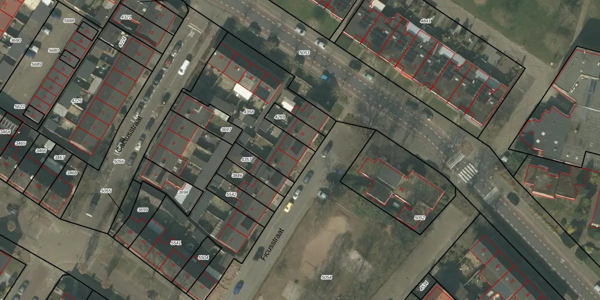 Het perceel waarop Ficusstraat 13 staat heeft een oppervlakte van 1023 m². Dit is een zeer groot perceel. De perceeloppervlakte wordt geregistreerd door het Kadaster. Gedetailleerde informatie over de maten van dit perceel kunt u vinden in het rapport Kadastrale kaart met maatvoering van Ficusstraat 13.