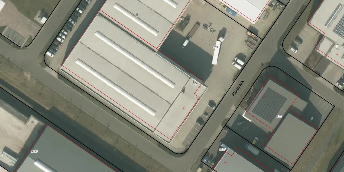 Het perceel waarop Florapark 34 staat heeft een oppervlakte van 8300 m². Dit is een zeer groot perceel. De perceeloppervlakte wordt geregistreerd door het Kadaster. Gedetailleerde informatie over de maten van dit perceel kunt u vinden in het rapport Kadastrale kaart met maatvoering van Florapark 34.