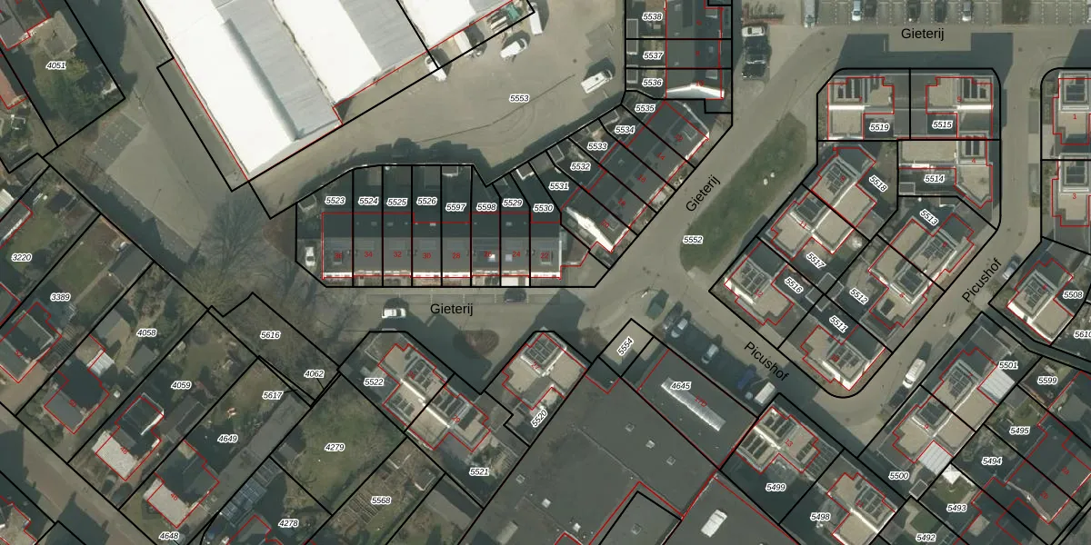 Gieterij 22 is gelegen op kadastraal perceel ATN01G5530. Deze kadastrale aanduiding is uniek en wordt gebruikt door het Kadaster om eigendomsrechten en andere zakelijke rechten vast te leggen. Het perceel maakt onderdeel uit van de kadastrale gemeente Asten.