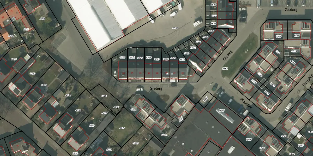Het perceel waarop Gieterij 28 staat heeft een oppervlakte van 122 m². Dit is een middelgroot perceel. De perceeloppervlakte wordt geregistreerd door het Kadaster. Gedetailleerde informatie over de maten van dit perceel kunt u vinden in het rapport Kadastrale kaart met maatvoering van Gieterij 28.