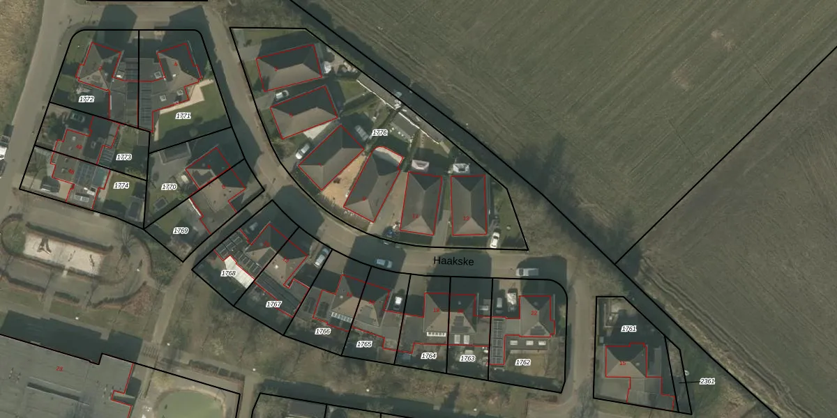 Het perceel waarop Haakske 11 staat heeft een oppervlakte van 1956 m². Dit is een zeer groot perceel. De perceeloppervlakte wordt geregistreerd door het Kadaster. Gedetailleerde informatie over de maten van dit perceel kunt u vinden in het rapport Kadastrale kaart met maatvoering van Haakske 11.
