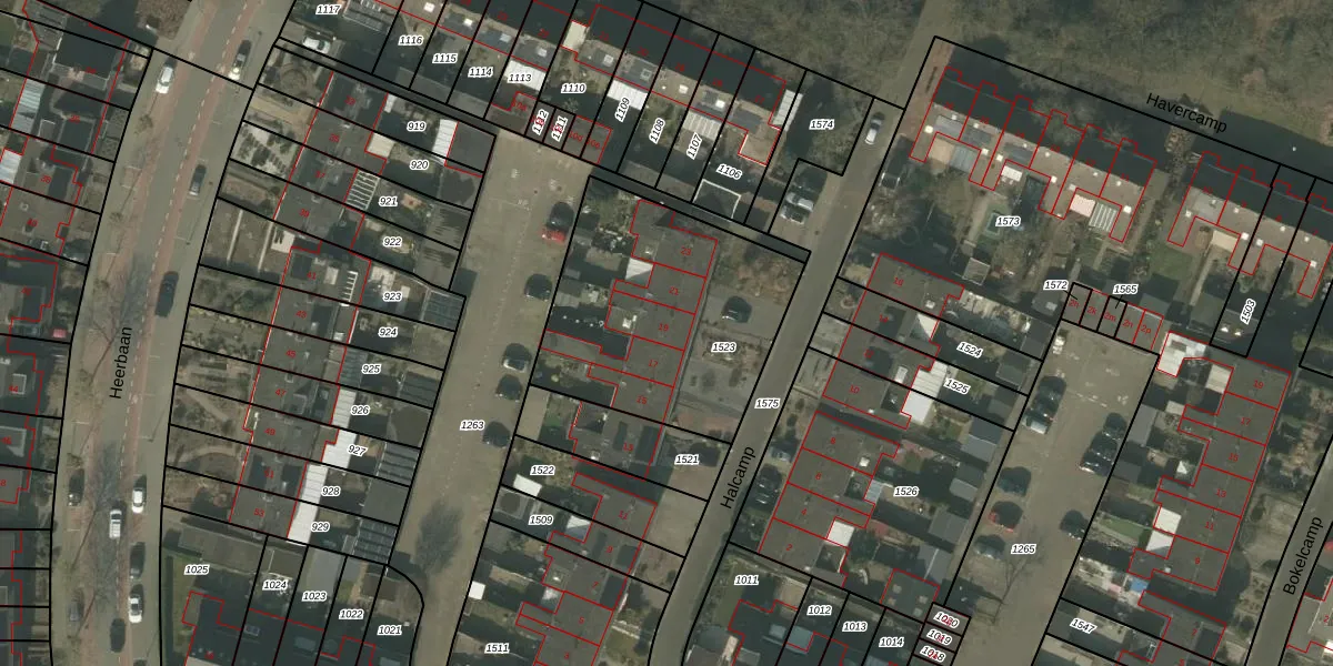 Het perceel waarop Halcamp 19 staat heeft een oppervlakte van 1043 m². Dit is een zeer groot perceel. De perceeloppervlakte wordt geregistreerd door het Kadaster. Gedetailleerde informatie over de maten van dit perceel kunt u vinden in het rapport Kadastrale kaart met maatvoering van Halcamp 19.
