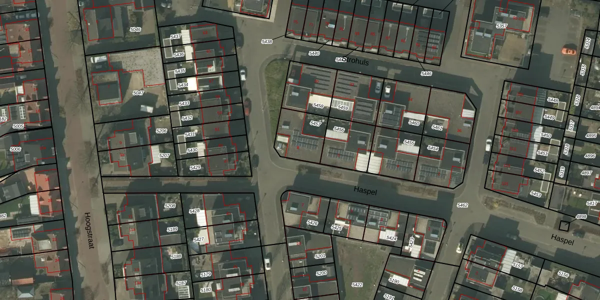 Het perceel waarop Haspel 8 staat heeft een oppervlakte van 250 m². Dit is een middelgroot perceel. De perceeloppervlakte wordt geregistreerd door het Kadaster. Gedetailleerde informatie over de maten van dit perceel kunt u vinden in het rapport Kadastrale kaart met maatvoering van Haspel 8.