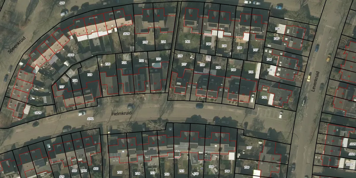Het perceel waarop Helmkruid 13 staat heeft een oppervlakte van 345 m². Dit is een groot perceel. De perceeloppervlakte wordt geregistreerd door het Kadaster. Gedetailleerde informatie over de maten van dit perceel kunt u vinden in het rapport Kadastrale kaart met maatvoering van Helmkruid 13.