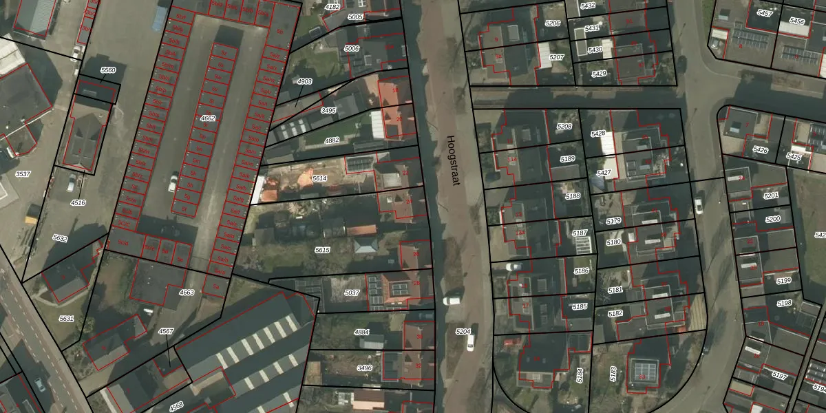 Het perceel waarop Hoogstraat 24 staat heeft een oppervlakte van 860 m². Dit is een groot perceel. De perceeloppervlakte wordt geregistreerd door het Kadaster. Gedetailleerde informatie over de maten van dit perceel kunt u vinden in het rapport Kadastrale kaart met maatvoering van Hoogstraat 24.