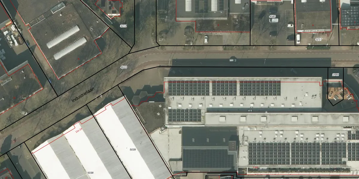 Het perceel waarop Industrielaan 9 staat heeft een oppervlakte van 9090 m². Dit is een zeer groot perceel. De perceeloppervlakte wordt geregistreerd door het Kadaster. Gedetailleerde informatie over de maten van dit perceel kunt u vinden in het rapport Kadastrale kaart met maatvoering van Industrielaan 9.