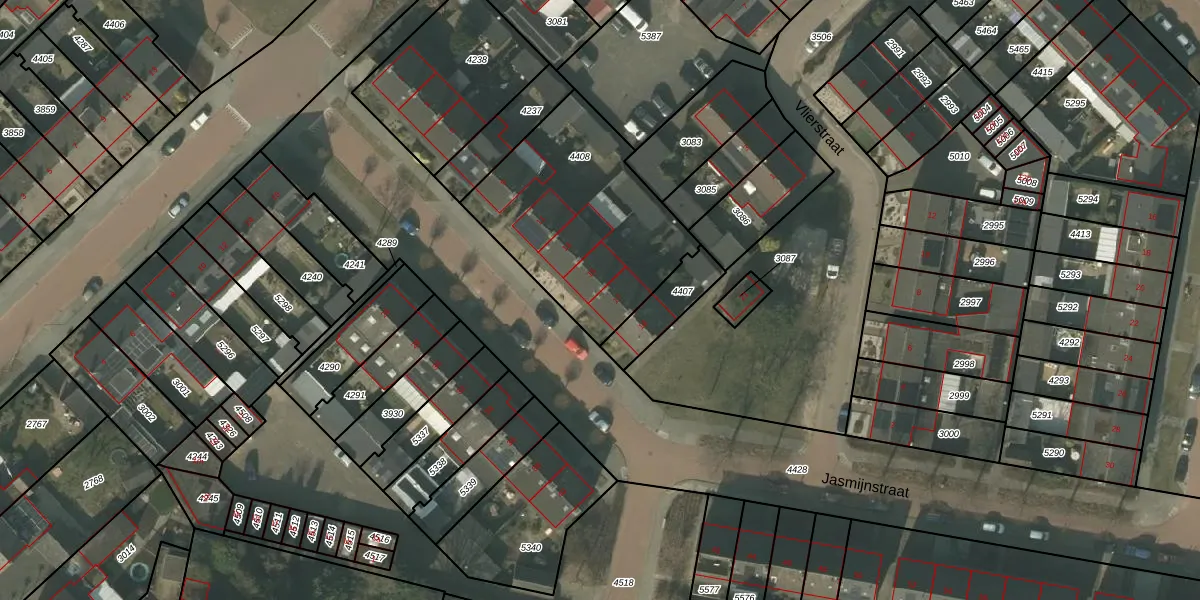Het perceel waarop Jasmijnstraat 17 staat heeft een oppervlakte van 842 m². Dit is een groot perceel. De perceeloppervlakte wordt geregistreerd door het Kadaster. Gedetailleerde informatie over de maten van dit perceel kunt u vinden in het rapport Kadastrale kaart met maatvoering van Jasmijnstraat 17.