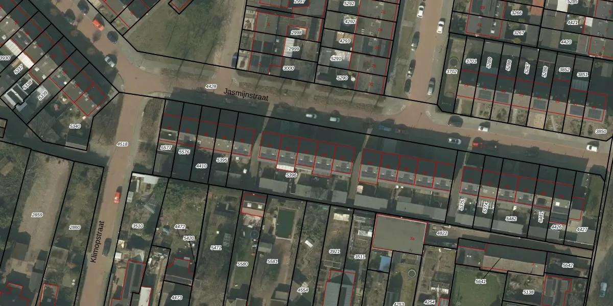 Jasmijnstraat 56 is gelegen op kadastraal perceel ATN01C5396. Deze kadastrale aanduiding is uniek en wordt gebruikt door het Kadaster om eigendomsrechten en andere zakelijke rechten vast te leggen. Het perceel maakt onderdeel uit van de kadastrale gemeente Asten.