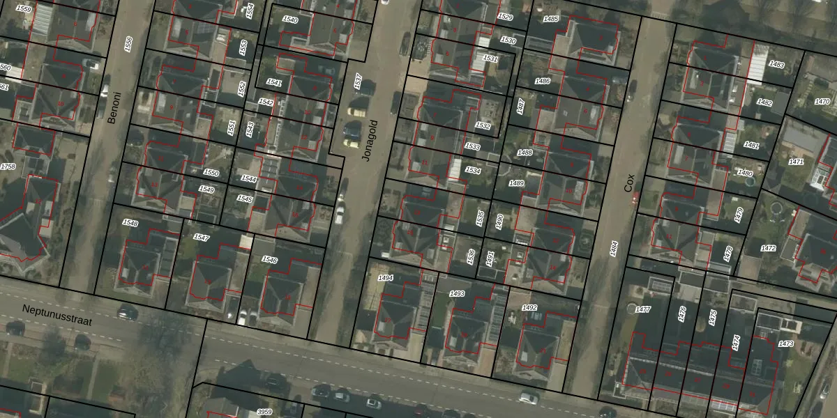 Jonagold 13 is gelegen op kadastraal perceel ATN01N1535. Deze kadastrale aanduiding is uniek en wordt gebruikt door het Kadaster om eigendomsrechten en andere zakelijke rechten vast te leggen. Het perceel maakt onderdeel uit van de kadastrale gemeente Asten.