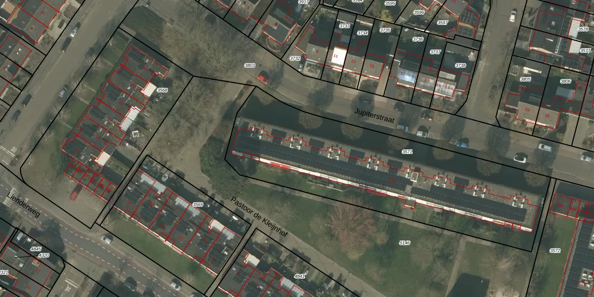Jupiterstraat 12 is gelegen op kadastraal perceel ATN01C3571. Deze kadastrale aanduiding is uniek en wordt gebruikt door het Kadaster om eigendomsrechten en andere zakelijke rechten vast te leggen. Het perceel maakt onderdeel uit van de kadastrale gemeente Asten.