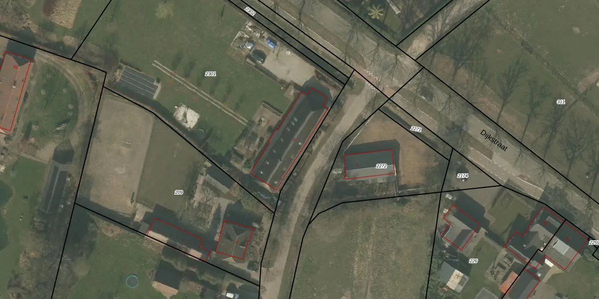 Het perceel waarop Keizersdijk 2 staat heeft een oppervlakte van 3802 m². Dit is een zeer groot perceel. De perceeloppervlakte wordt geregistreerd door het Kadaster. Gedetailleerde informatie over de maten van dit perceel kunt u vinden in het rapport Kadastrale kaart met maatvoering van Keizersdijk 2.