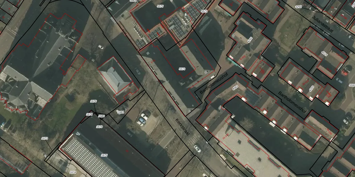 Kerkstraat 7-e is gelegen op kadastraal perceel ATN01G5573. Deze kadastrale aanduiding is uniek en wordt gebruikt door het Kadaster om eigendomsrechten en andere zakelijke rechten vast te leggen. Het perceel maakt onderdeel uit van de kadastrale gemeente Asten.