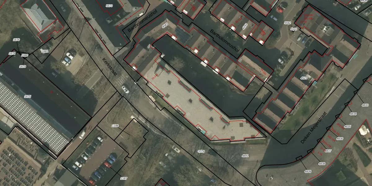 Het perceel waarop Kerkstraat 9 staat heeft een oppervlakte van 2303 m². Dit is een zeer groot perceel. De perceeloppervlakte wordt geregistreerd door het Kadaster. Gedetailleerde informatie over de maten van dit perceel kunt u vinden in het rapport Kadastrale kaart met maatvoering van Kerkstraat 9.