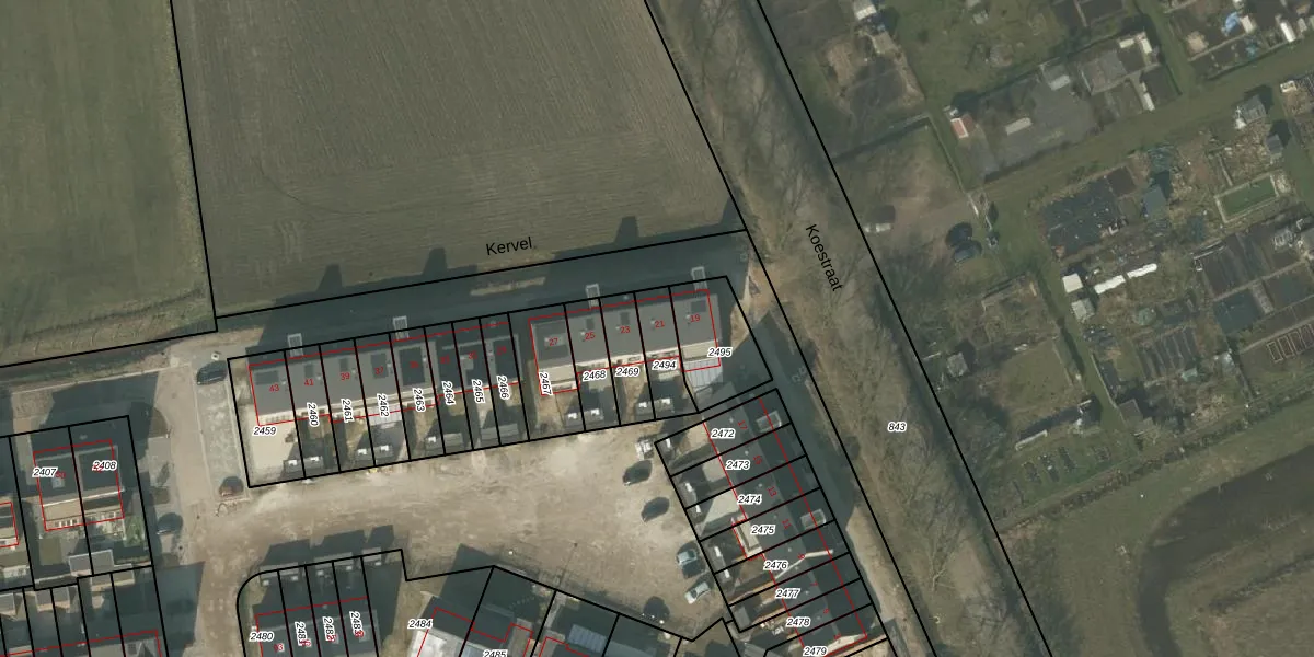 Kervel 21 is gelegen op kadastraal perceel ATN01N2494. Deze kadastrale aanduiding is uniek en wordt gebruikt door het Kadaster om eigendomsrechten en andere zakelijke rechten vast te leggen. Het perceel maakt onderdeel uit van de kadastrale gemeente Asten.