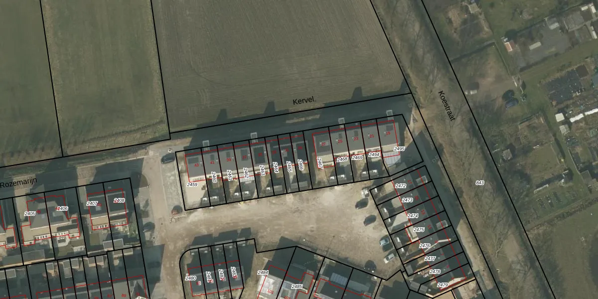 Het perceel waarop Kervel 29 staat heeft een oppervlakte van 88 m². Dit is een klein perceel. De perceeloppervlakte wordt geregistreerd door het Kadaster. Gedetailleerde informatie over de maten van dit perceel kunt u vinden in het rapport Kadastrale kaart met maatvoering van Kervel 29.