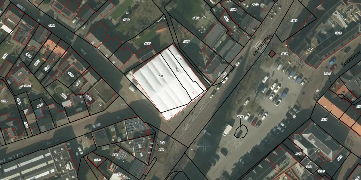 Het perceel waarop Koningsplein 12 staat heeft een oppervlakte van 650 m². Dit is een groot perceel. De perceeloppervlakte wordt geregistreerd door het Kadaster. Gedetailleerde informatie over de maten van dit perceel kunt u vinden in het rapport Kadastrale kaart met maatvoering van Koningsplein 12.