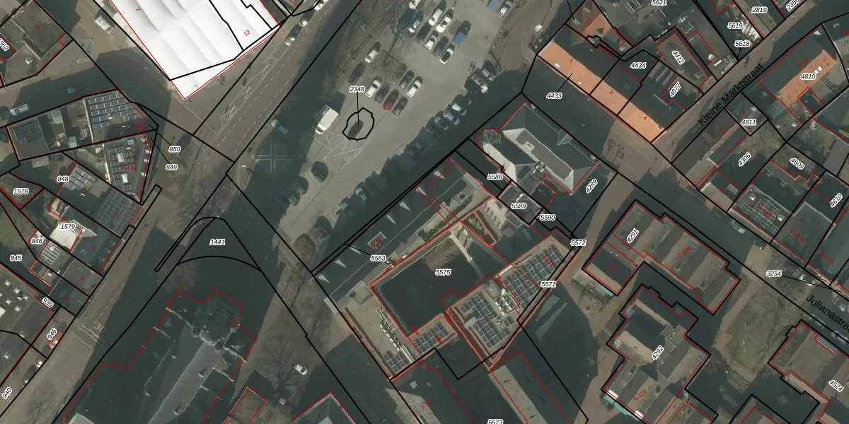 Het adres is gelegen op perceel 5575 in de sectie G en de kadastrale gemeente Asten. De kadastrale aanduiding is aldus ATN01-G-5575. Het perceel is 1835 m² groot. Dat is kleiner dan de gemiddelde perceeloppervlakte in Asten, dat op 6611 m² ligt. De grootste perceeloppervlakte in de kadastrale gemeente is 3,95 km². De kleinste oppervlakte bedraagt 0 m². Op het perceel liggen in totaal 24 adressen. In de Basisregistratie Kadaster (BRK) werden de grenzen van het perceel geregistreerd op 21-12-2020.
