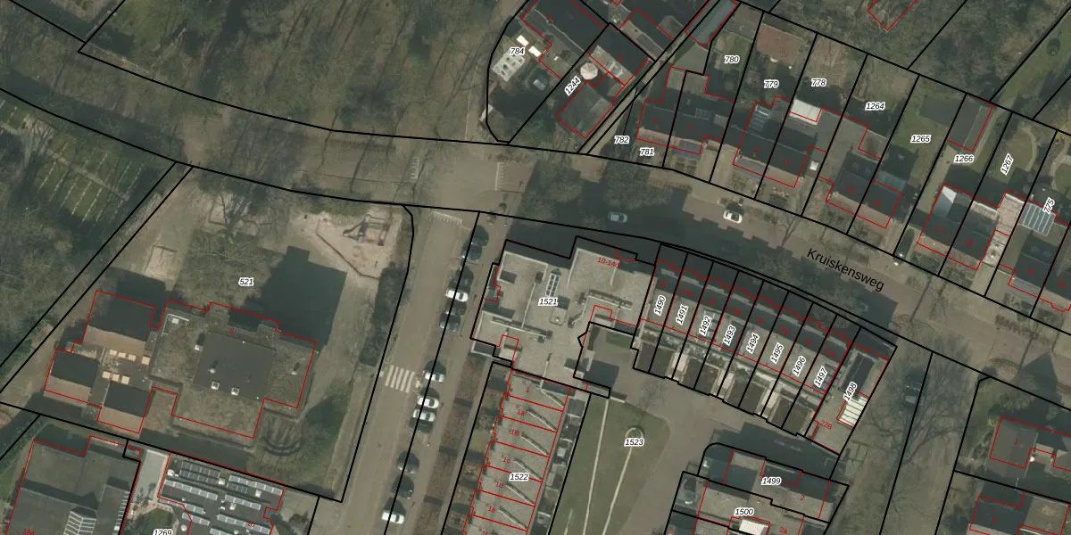 Het perceel waarop Kruiskensweg 12-a staat heeft een oppervlakte van 610 m². Dit is een groot perceel. De perceeloppervlakte wordt geregistreerd door het Kadaster. Gedetailleerde informatie over de maten van dit perceel kunt u vinden in het rapport Kadastrale kaart met maatvoering van Kruiskensweg 12-a.