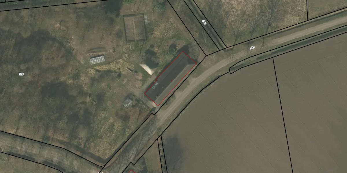 Het perceel waarop het adres ligt is ATN01-M-186. De afkorting 'ATN01' staat voor kadastrale gemeente Asten. De gemiddelde perceeloppervlakte in de kadastrale gemeente Asten is 6633,12 m². Dit perceel is met zijn 1,4 ha dus groter dan gemiddeld. Het kleinste perceel in de kadastrale gemeente is 0 m² groot. De grootste perceeloppervlakte is 3,95 km². Dit is het enige adres dat aanwezig is op het perceel. In de Basisregistratie Kadaster (BRK) werden de grenzen van het perceel geregistreerd op 23-01-2008.