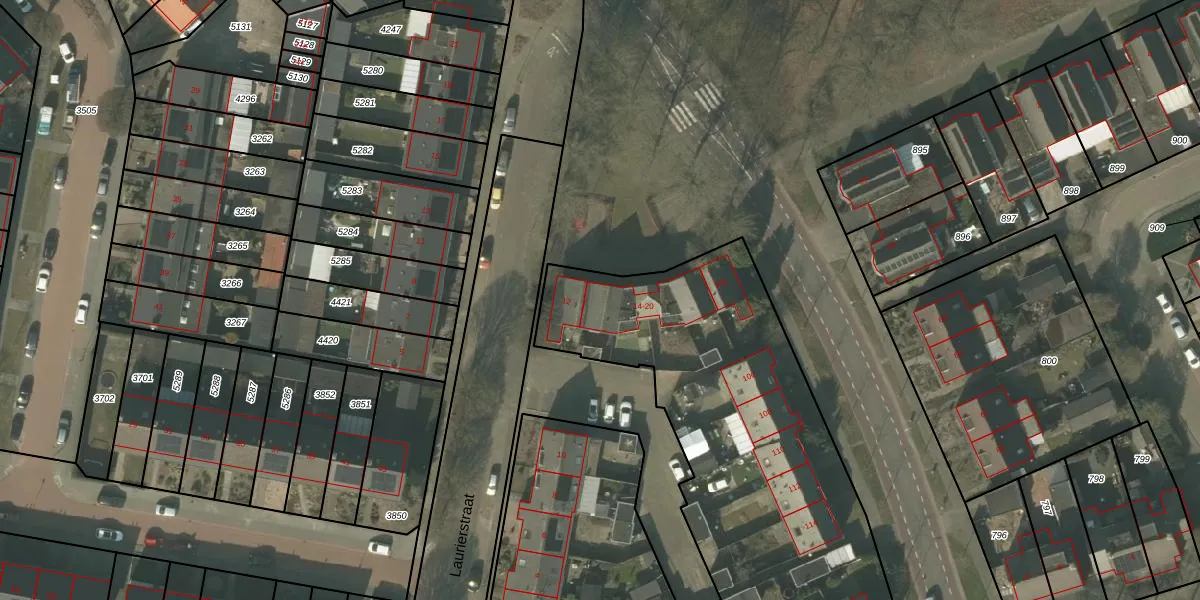 Laurierstraat 14 is gelegen op kadastraal perceel ATN01N888. Deze kadastrale aanduiding is uniek en wordt gebruikt door het Kadaster om eigendomsrechten en andere zakelijke rechten vast te leggen. Het perceel maakt onderdeel uit van de kadastrale gemeente Asten.